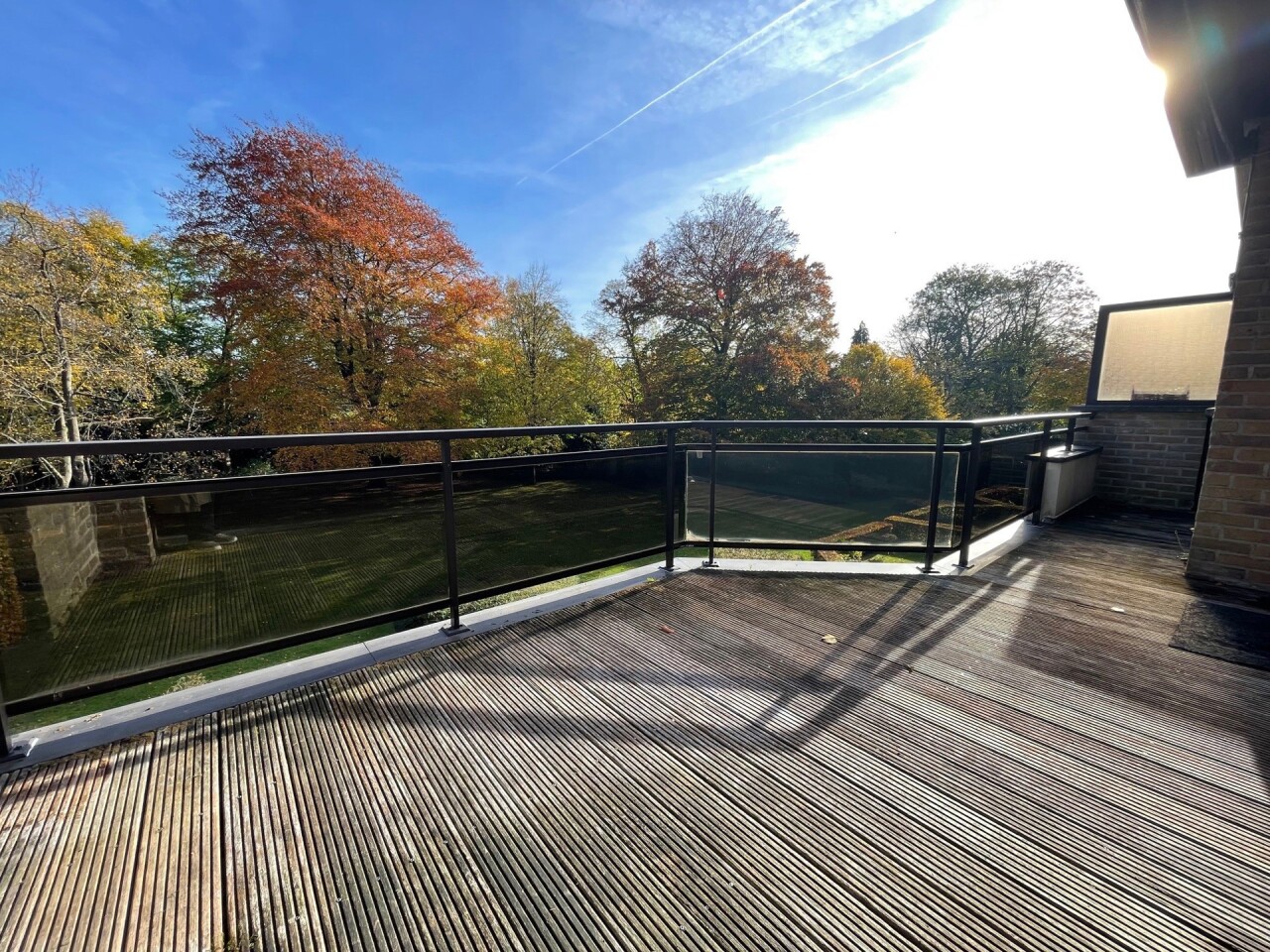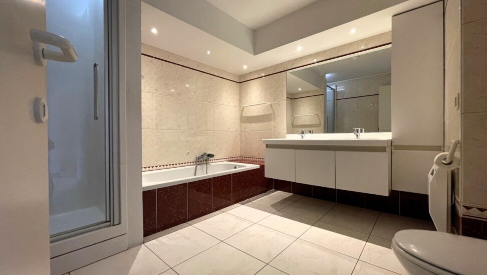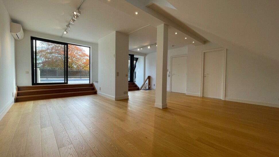 Prachtig duplex appartement van ca. 162 m² met twee terrassen van resp. 10 en 55 m². Het appartement maakt deel uit van een goed beheerde Residentie temidden van een parkdomein van 5783 m². Op de tweede verdieping bevindt zich de inkomhal met vestiaire en gastentoilet. De hal geeft uit op een ruime woonkamer met kamerbrede raampartij met toegang tot een terras met zicht op de parktuin en met naastgelegen ingerichte keuken en berging/wasplaats. Langs de rustige voorzijde bevinden zich twee slaapkamers, een badkamer met ligbad, douche, dubbel lavabomeubel en toilet. Vanuit de woonkamer vertrekt een trap (momenteel nog voorzien van elektrische traplift) naar de bovengelegen derde verdieping die bestaat uit één grote open ruimte, en een aparte badkamer met douche, lavabomeubel en toilet met tevens aansluiting voor wasmachine. Bovendien zijn op deze verdieping ook nog de aansluitingen voor een keukenblok daar dit vroeger een studio was en ook als dusdanig nog kan worden ingericht. Er is trouwens ook nog een deur naar de gemeenschappelijke traphal boven. De studio heeft ook een airco/inverter die ook als verwarming kan gebruikt worden. Tenslotte bereiken we een zeer ruim zuidgericht dakterras van ca. 55 m² met zonnetent. De residentie is ideaal gelegen in een eenrichtingsstraat nabij het oude dorpscentrum van Schilde op wandelafstand van de wekelijkse markt. Ondergronds heeft dit appartement nog een privatieve berging, en twee autostaanplaatsen. Ook is er nog een gemeenschappelijke fietsenberging. Alle ruimten zijn op eiken parket behoudens inkomhal, keuken, berging, badkamers en toilet die een tegelvloer hebben. Het gebouw heeft in alle apartementen elektrische vloerverwarming (er is nergens gas). Vg, gvkr, gvv, gdv, wg. Epc 259 kWh/m² oftewel label C.