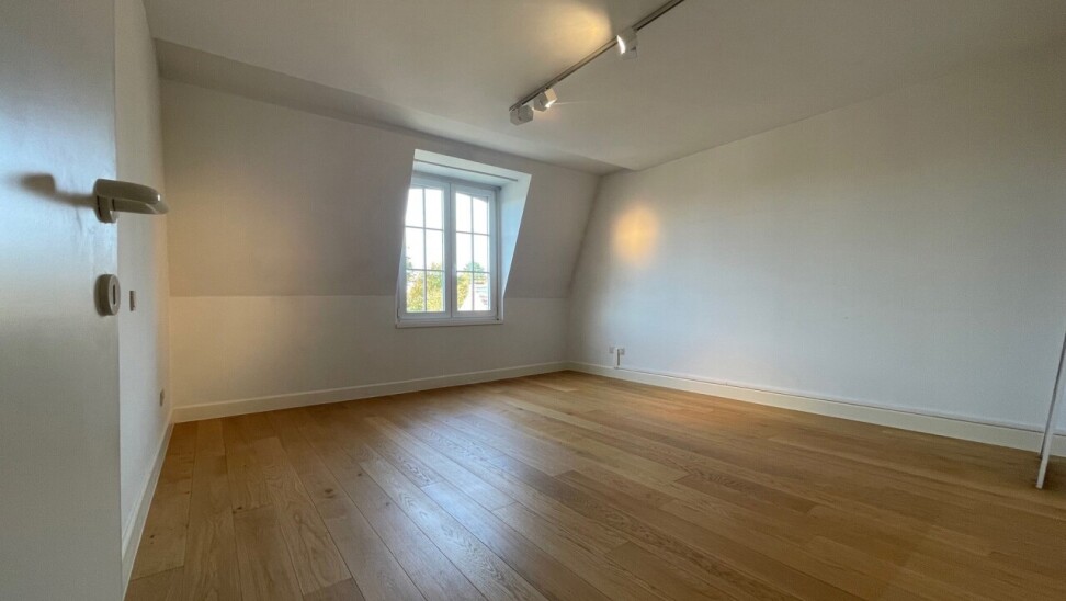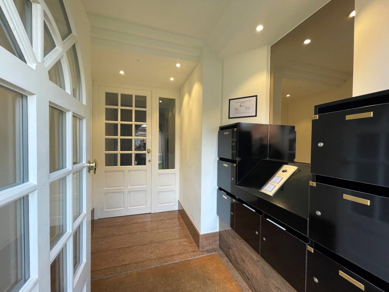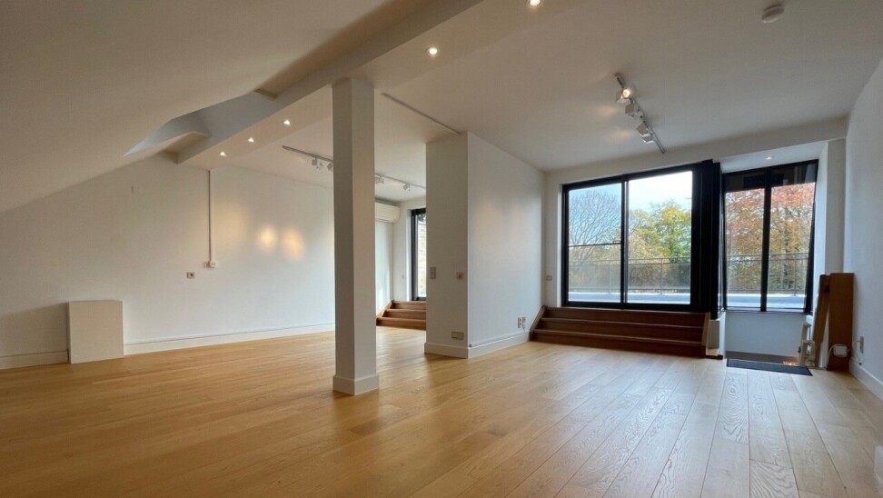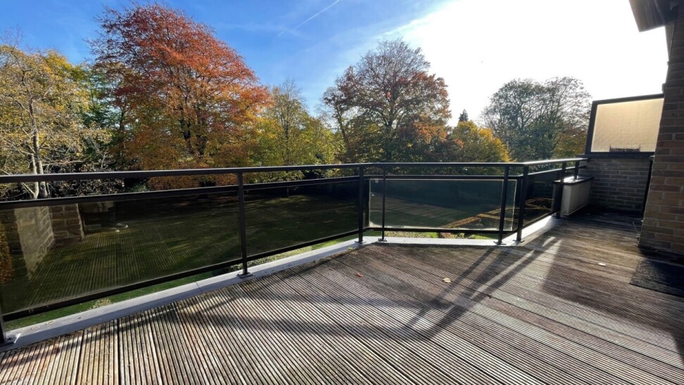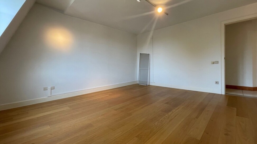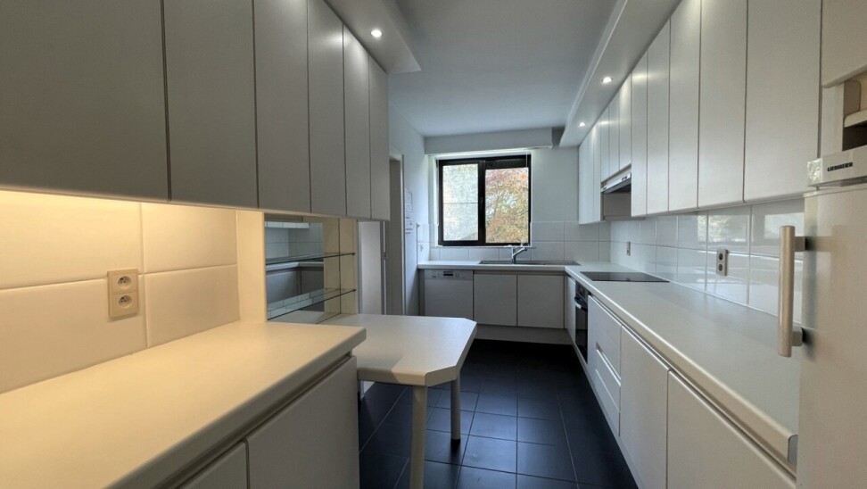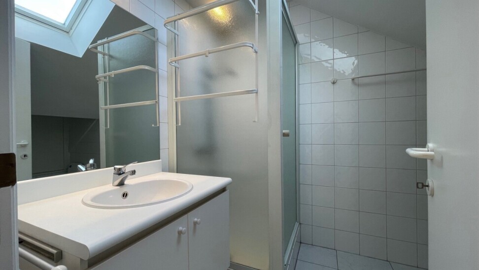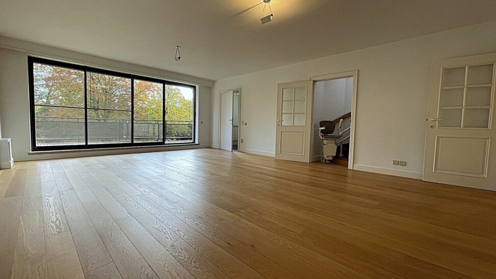 Prachtig duplex appartement van ca. 162 m² met twee zuidoost gerichte terrassen van resp. 10 en 55 m². Het appartement maakt deel uit van een goed beheerde residentie temidden van een parkdomein van 5783 m². De hal geeft uit op een ruime woonkamer op parket met kamerbrede raampartij en terras met zicht op de parktuin. Naastgelegen klassieke witte keuken en berging/wasplaats. Verder hal met gastentoilet, twee slaapkamers op parket en badkamer met ligbad, douche, toilet en dubbel lavabomeubel. In de woonkamer is een toegangsdeur met trap naar de bovengelegen verdieping. Deze bestaat uit één lichte open ruimte (vergelijkbaar met een studio) met eveneens aparte ingang naar de traphal, en een aparte badkamer met douche, lavabomeubel, toilet en aansluiting voor wasmachine. Bovendien zijn op deze verdieping extra aansluitingen voor tweede keuken, of bad. Deze ruimte heeft ook vloerverwarming doch tevens een een airco/inverter die ook als verwarming kan gebruikt worden (warme/koude lucht). Aansluitend via kamerbrede raampartij bereikbaar een zuidgericht dakterras van ca. 55 m² waar u de hele dag zon heeft. De residentie is ideaal gelegen in een zeer rustige eenrichtingsstraat nabij de oude dorpskern van Schilde (aan de kerk). Ook is er nog een gemeenschappelijke fietsenberging. Alle ruimten zijn op eiken parket behoudens inkomhal, keuken, berging, badkamers en toilet die een tegelvloer hebben. In het aanbod is één ruime staanplaats en ondergrondse berging inbegrepen. In goede staat maar op te frissen. Mits renovatie keuken en badkamers woont u in (of verhuurt u) een prachtig appartement op een schitterende locatie. Vg, gvkr, gvv, gdv, wg. Epc 259 kWh/m² oftewel label C (nog te verlagen mits vernieuwen van ramen).