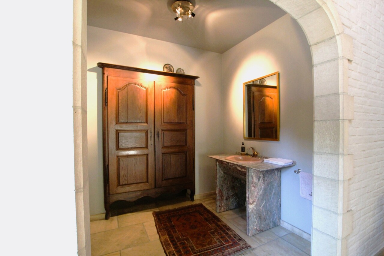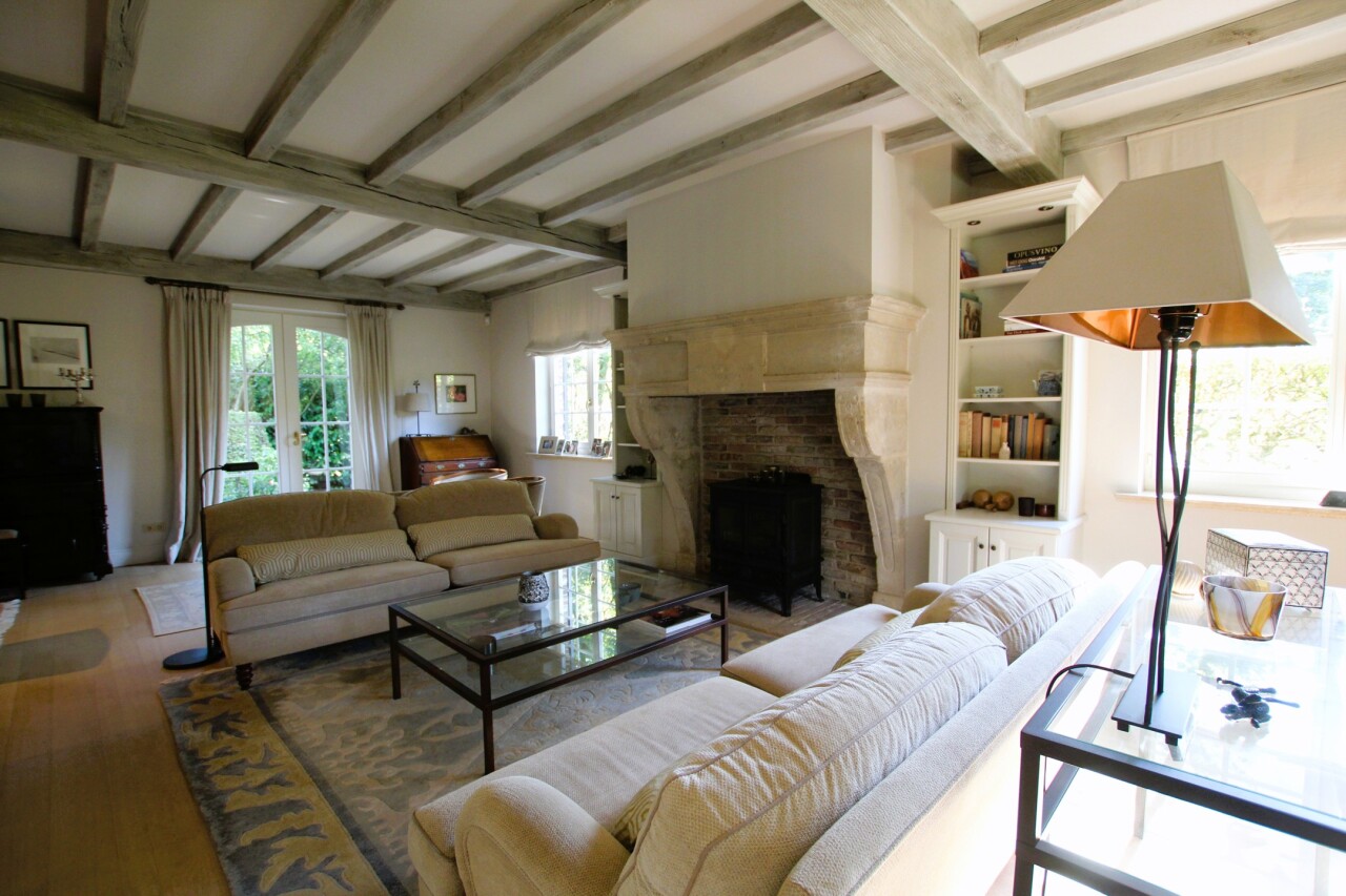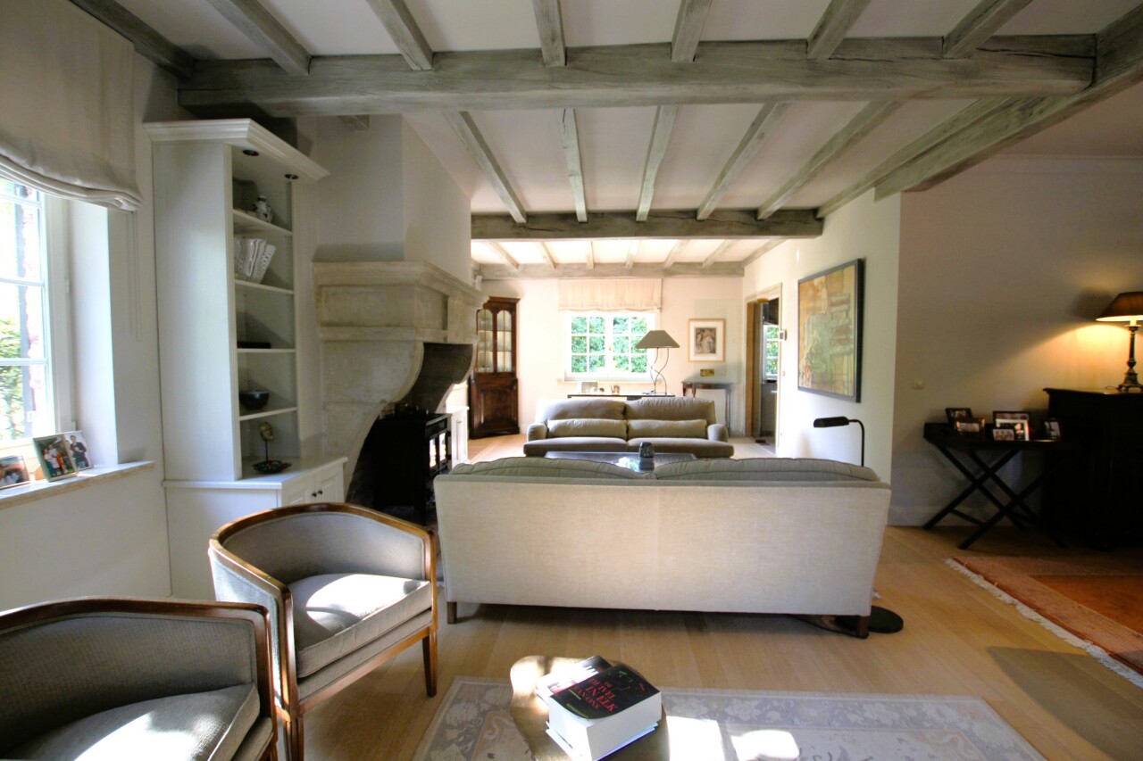 Op een uniek perceel van 4541 m² en 33 meter breed treffen we deze prachtige villa gebouwd in 1985 en voorzien van een vernieuwde CV-ketel en dubbel geïsoleerd pannendak (zowel het dak als de vloerplaat zijn recent geïsoleerd met glaswol en de vloer van de zolder is afgewerkt met triplex platen), overal houten ramen met dubbel glas en dus een gunstig C-label. De woning is onderkelderd met een verluchte ruimte van 1.85 m en beschikt daarnaast over een wijnkelder. Via de riante inkomhal met lichteiken trap en vestiare met gastentoilet, betreden we de leefruimte (57 m²) in L-vorm met antieke schouwmantel in Franse zandsteen en volledig voorzien van voleiken parket (20 mm). Vanuit de eetkamer bereiken we de ruime leefkeuken (30 m²) met naastgelegen bijkeuken (18,6 m²) met doucheruimte die verder toegang geeft tot de dubbele garage. De keuken is ingericht met alle toestellen en beschikt ook over een gezellig houtkacheltje. Tevens ga je vanuit de keuken naar het oostgericht terras met zicht op de diepe tuin of het zuidgerichte en gedeeltelijk overdekte terras gelegen langs de rechterzijkant van de woning.